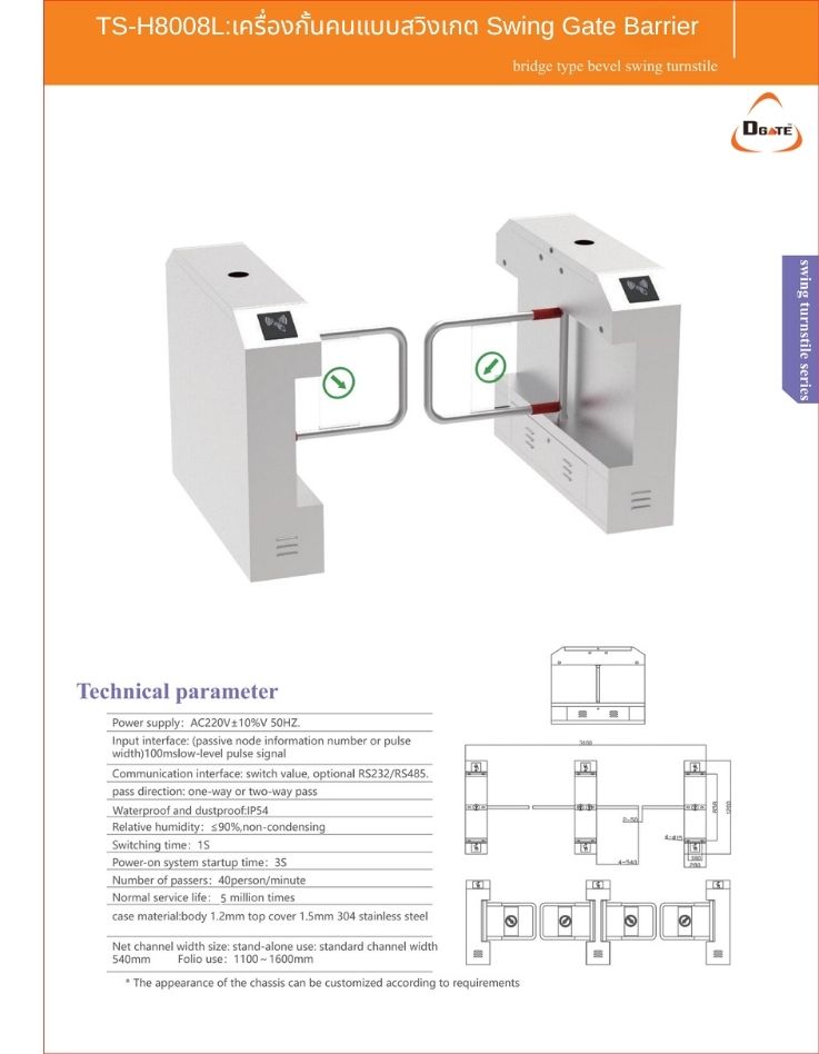 TS-H8008L:เครื่องกั้นคนแบบสวิงเกต Swing Gate Barrier